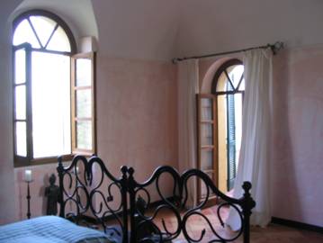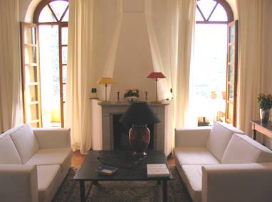 Durch die hohen Rundbogen - Fenstertüren geht man direkt