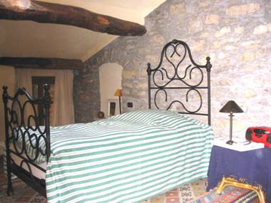 Natursteinwänden im Zusammenspiel mit der originalen alten Holzdecke aus
