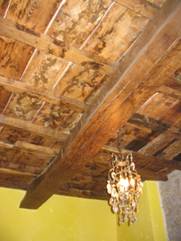 dieser Raum hat den warmen Lärchenholz – Fußboden und alte Kastanien -balken